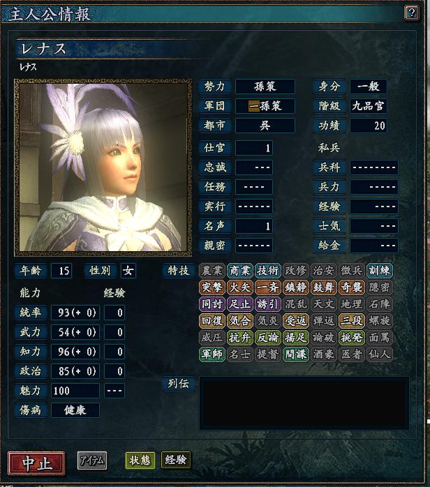 特技は 内政値高かったのが 商業と技術なのでこれ2つつけてみたw